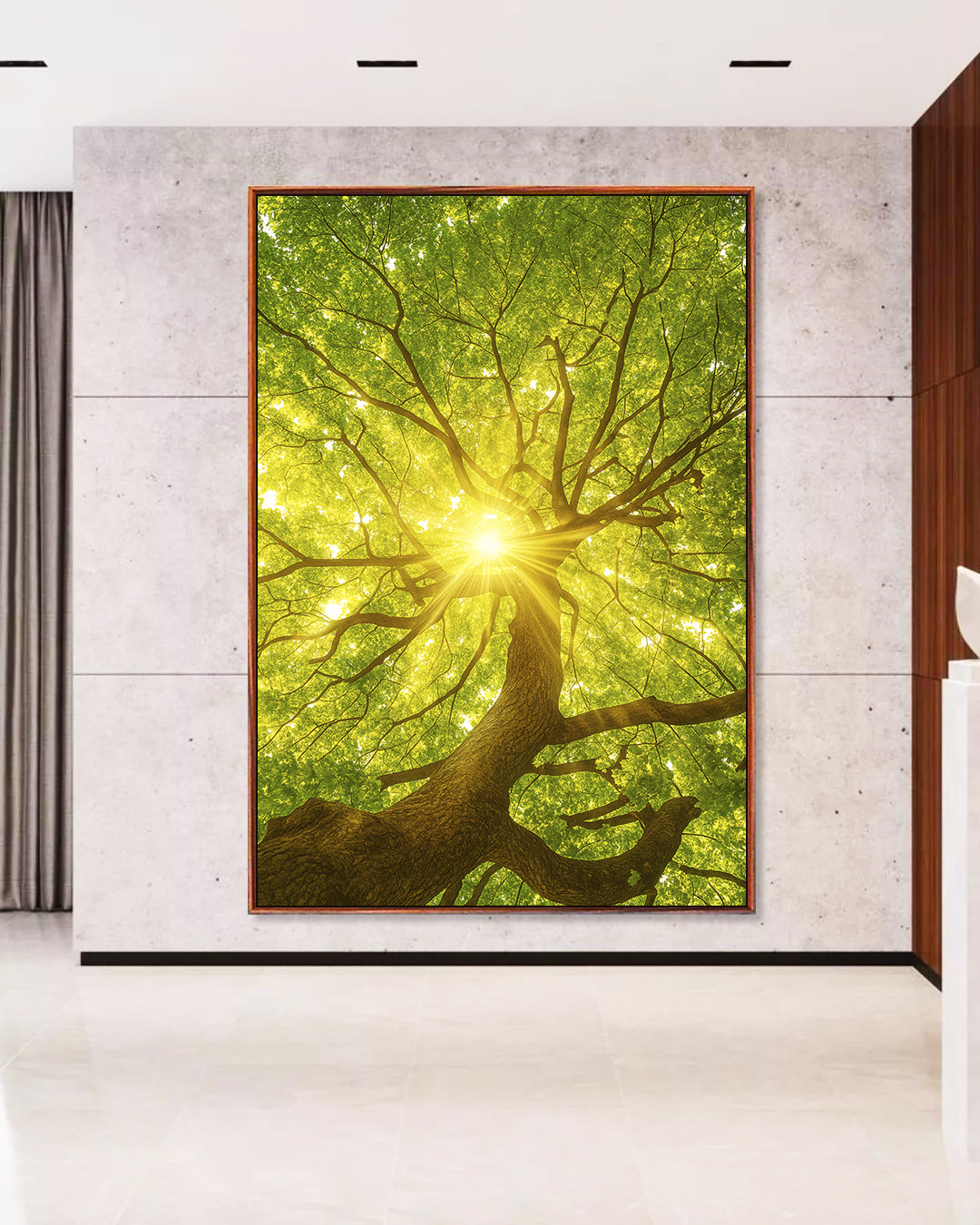 A beleza das árvores iluminadas pelo sol torna este Quadro Vertical uma peça inspiradora. Ideal para quem busca equilíbrio e sofisticação em ambientes como sala, quarto ou escritório, trazendo serenidade e frescor natural à decoração.