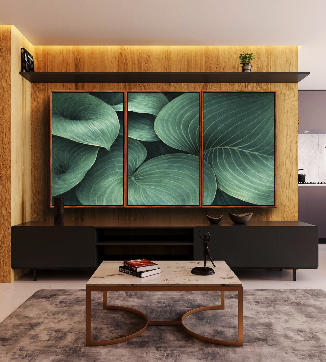 Este Trio de Quadros destaca folhas de Hosta em tons verdes intensos, criando um visual sofisticado e atemporal. Ideal para decorar salas de estar, quartos sofisticados, escritórios elegantes ou halls de entrada com identidade natural.