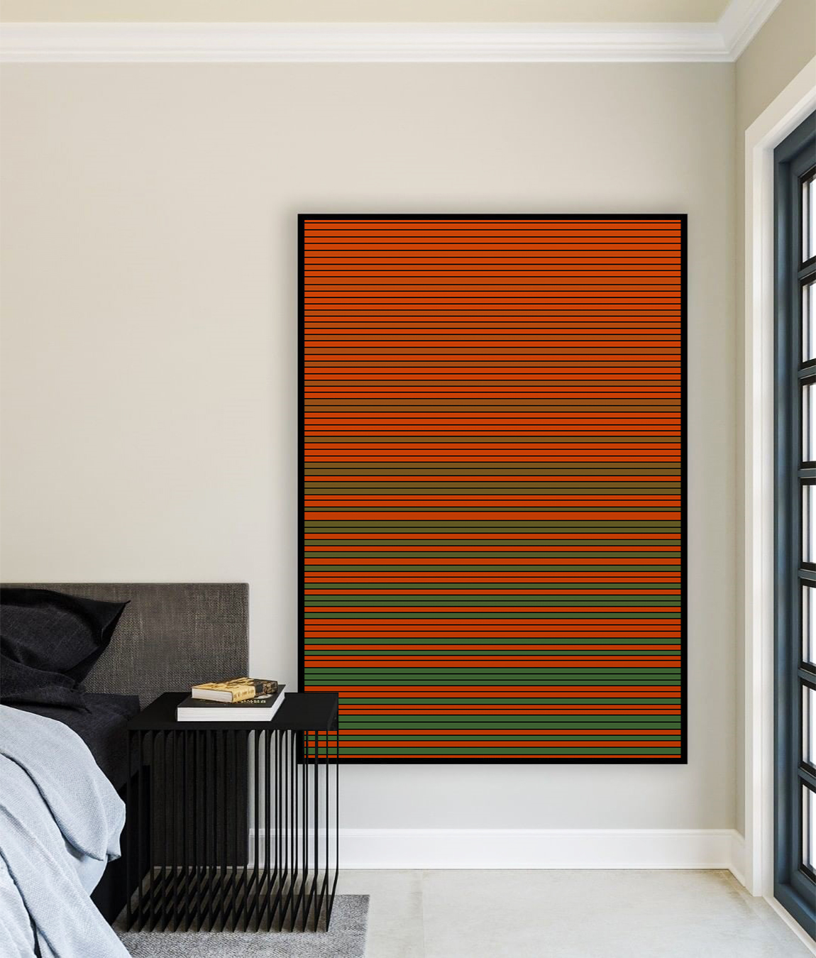 Moderno e expressivo, este Quadro Vertical com degradê em tons de laranja coral e verde transmite energia equilibrada e sofisticação. Ideal para valorizar salas modernas, quartos elegantes, escritórios criativos ou halls de entrada imponentes.