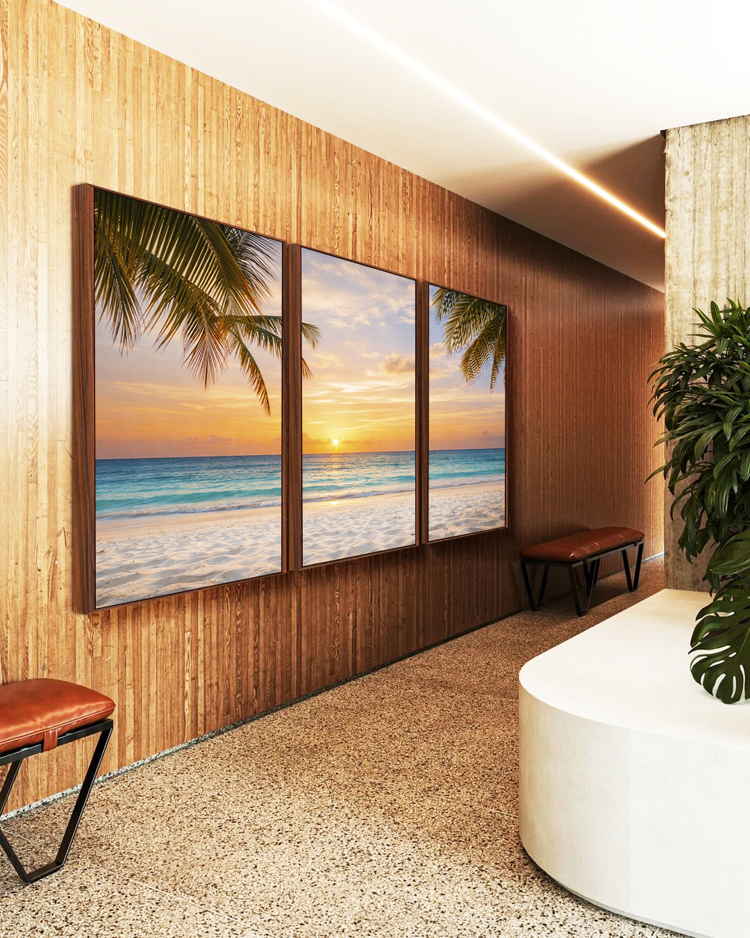 Sol, mar e natureza tropical se encontram em uma composição que ilumina e acolhe. Uma escolha perfeita para ambientes que buscam aconchego com um toque natural e relaxante.