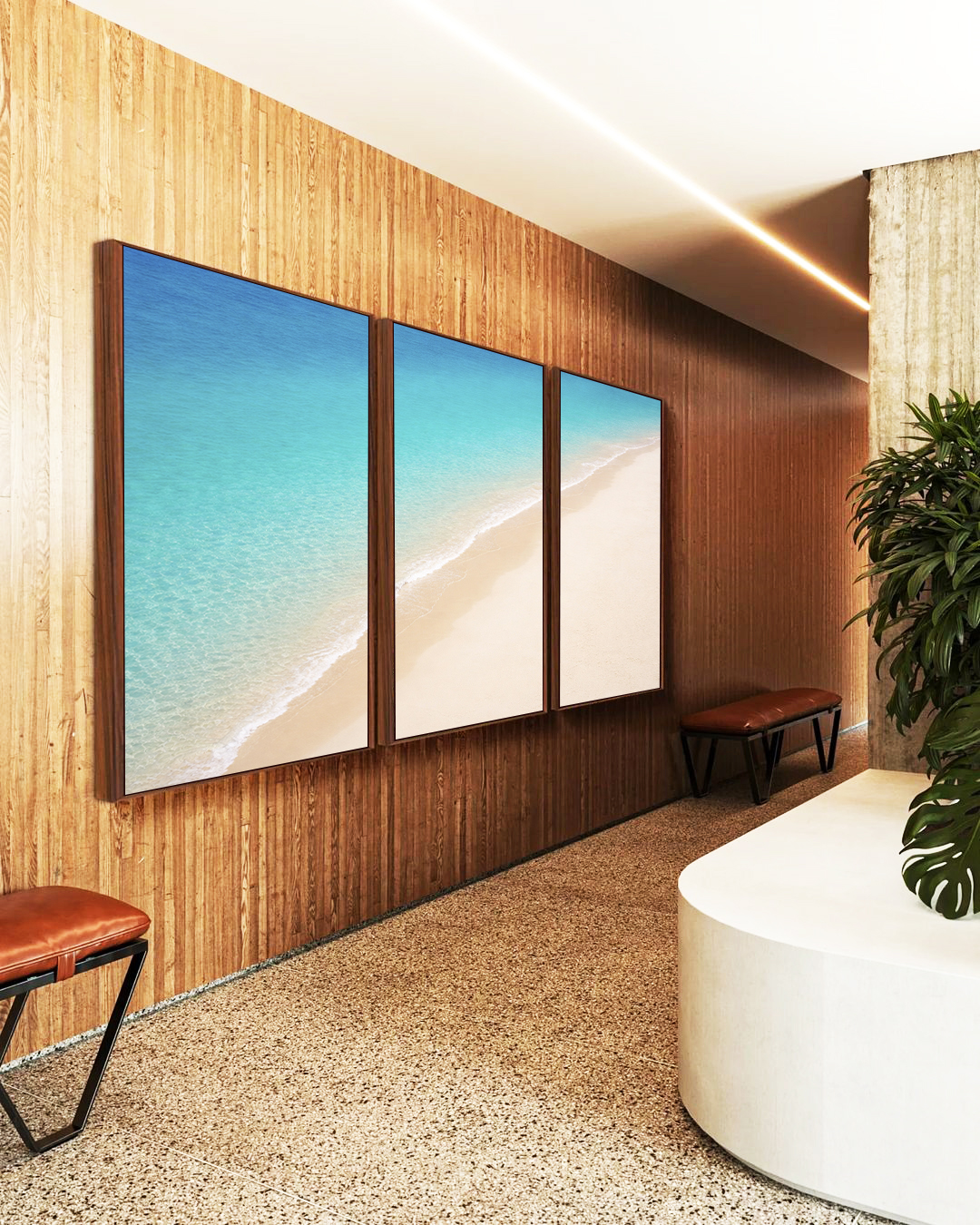 Tons suaves do oceano e da praia que trazem serenidade e aconchego ao espaço. Combina com decoração clean, praiana, moderna ou minimalista, deixando o ambiente mais leve.