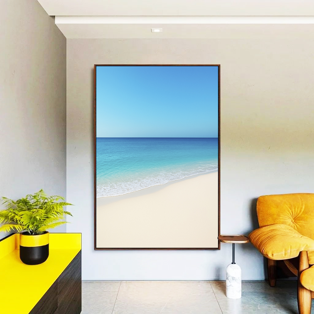 Com tons suaves de azul e a serenidade do mar calmo, este Quadro Vertical transmite paz e leveza à decoração. A escolha ideal para compor salas, quartos ou halls de entrada, criando uma atmosfera relaxante, luminosa e cheia de equilíbrio visual.