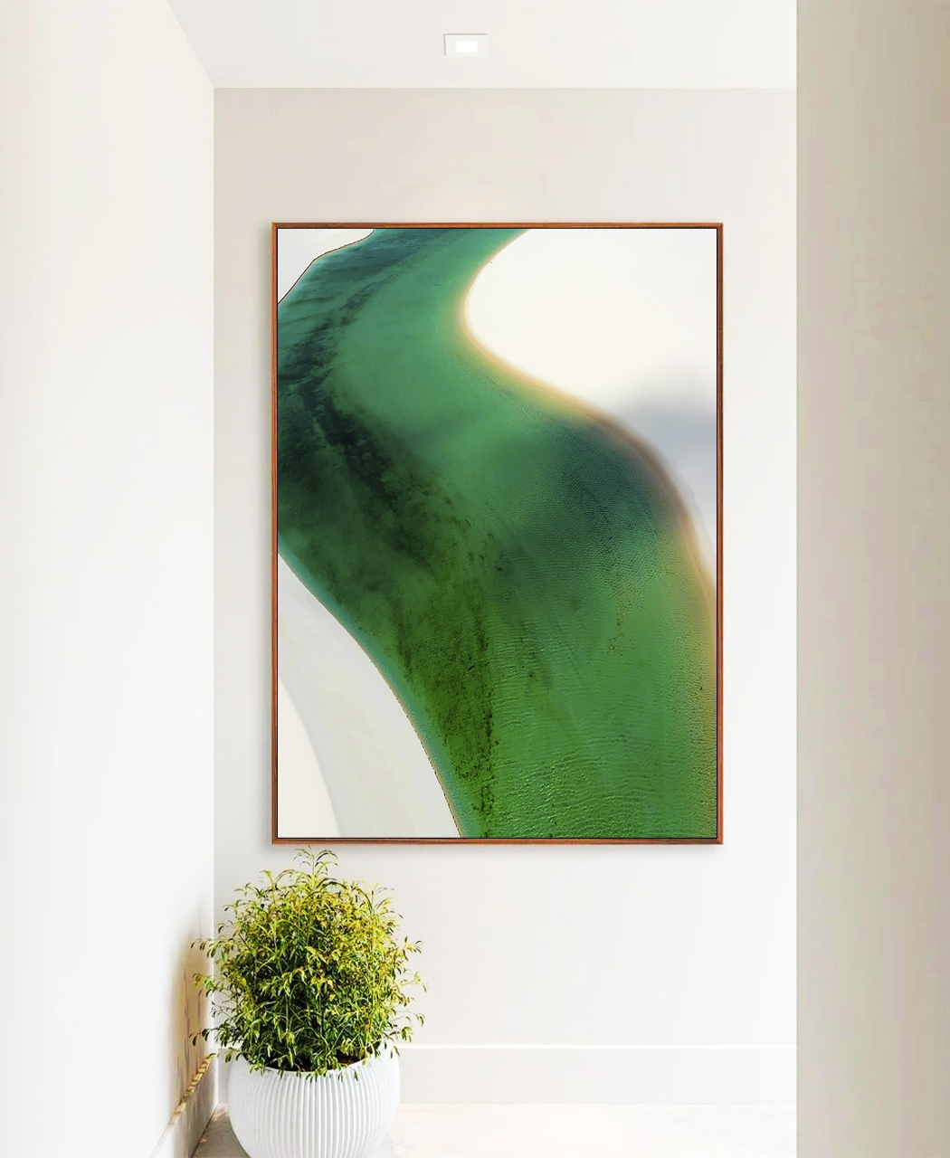 Este Quadro Vertical com mar turquesa e dunas de areia branca é a escolha certa para transformar sua sala, escritório ou quarto.