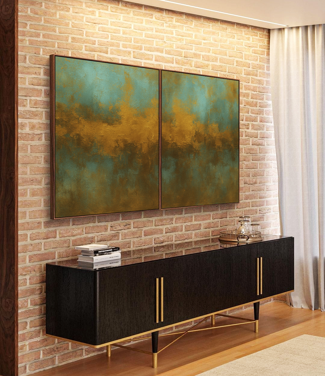 Este Duo de Quadros Abstrato apresenta tons terrosos de verde, marrom e dourado, criando uma atmosfera elegante e acolhedora. A escolha certa para salas modernas, quartos sofisticados, escritórios elegantes ou halls amplos. Belíssimo!