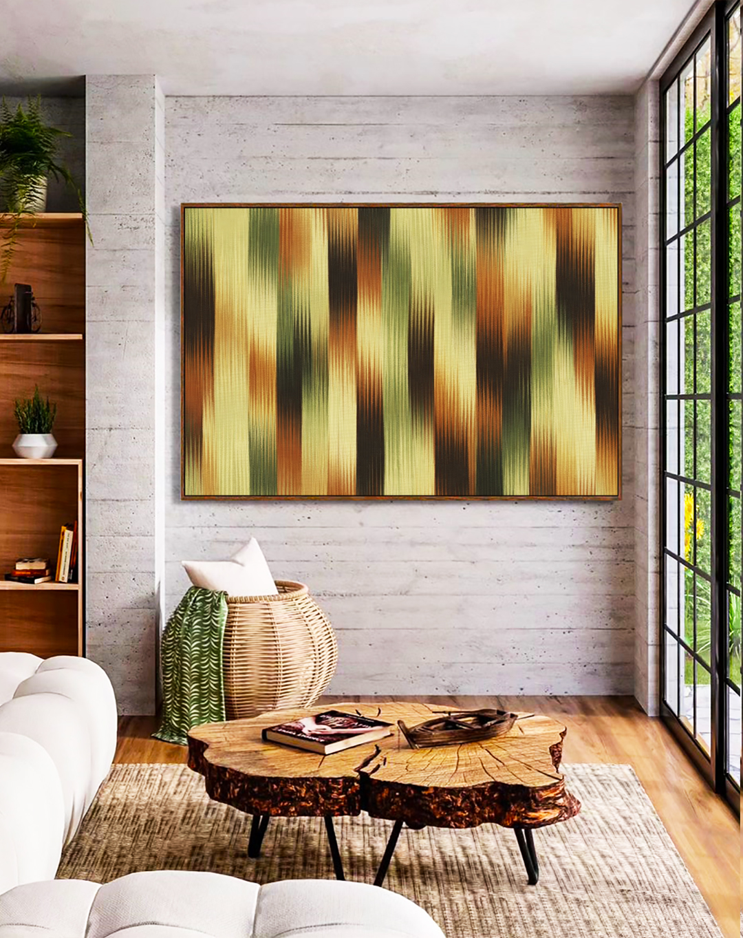 Sofisticado e harmonioso, este Quadro Horizontal com listras em degradê verde, marrom e cobre traz equilíbrio contemporâneo e presença elegante ao ambiente. A escolha certa para salas elegantes, quartos tranquilos ou escritórios profissionais.