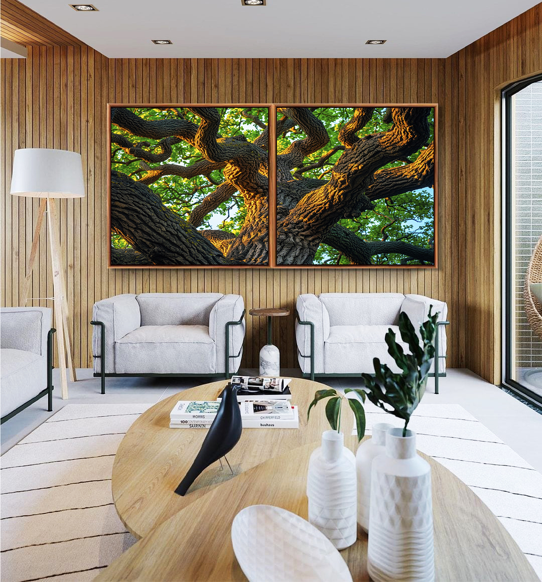 Este Duo de Quadros Quadros de árvore com galhos e folhagem verde traz a sensação de harmonia e frescor. Em moldura moderna, valoriza qualquer ambiente. Ideal para dar charme à sua sala, quarto ou escritório sofisticado.