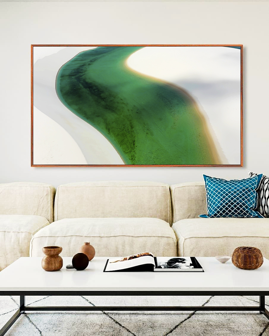 Este Quadro Horizontal com mar turquesa e dunas de areia branca é a escolha certa para transformar sua sala, escritório ou quarto. Sofisticação e leveza unem-se em uma peça que inspira tranquilidade e conecta seu espaço à natureza de forma elegante.