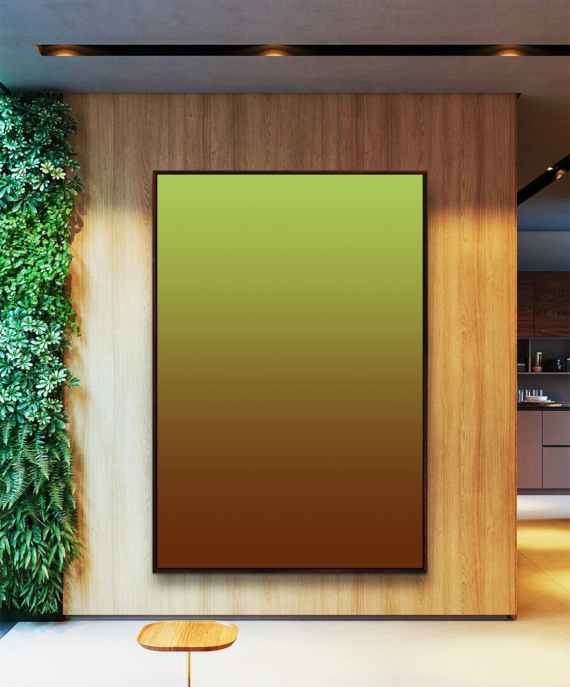Tons de verde claro e marrom chocolate criam um degradê elegante, inspirado na natureza, terra e folhas. Transmite aconchego, equilíbrio e sofisticação. Ideal para sala, quarto, escritório, decoração moderna, minimalista e natural.