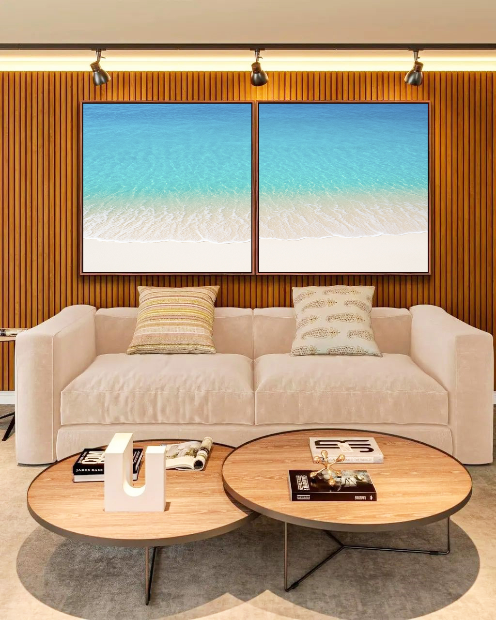 Com visual leve e elegante, este Duo de Quadros Quadrados de praia e mar azul cristalino transforma o ambiente com frescor e serenidade. Ideal para compor salas sofisticadas, quartos elegantes, escritórios modernos ou halls de entrada marcantes.