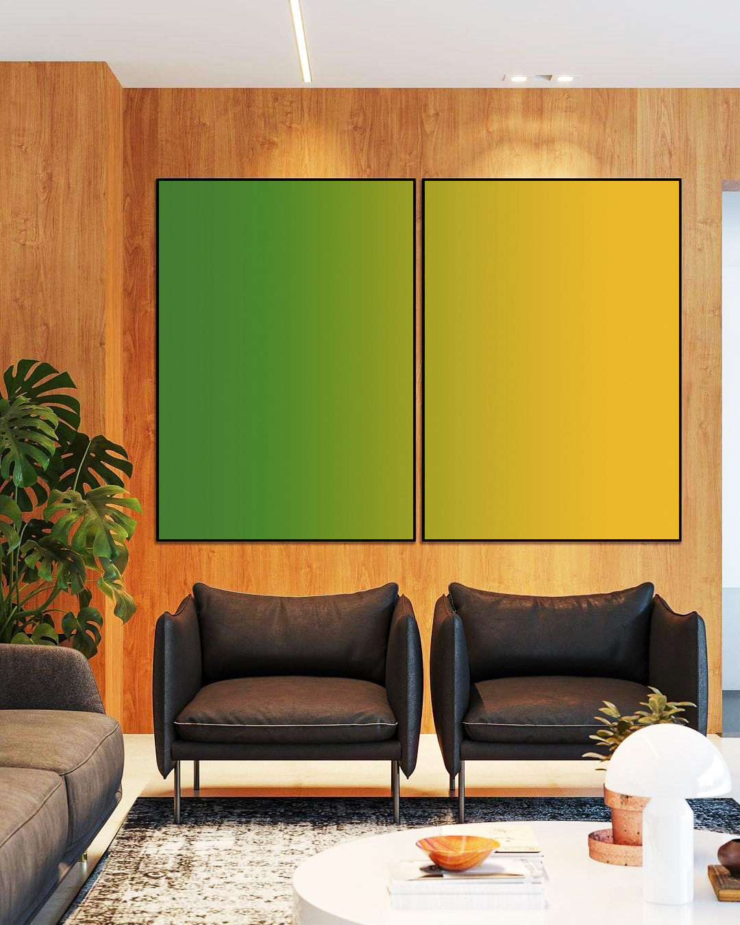 Com nuances em verde esmeralda e dourado, este Duo de Quadros Abstrato Degradê traz vida e requinte a qualquer ambiente. A escolha certa para realçar sua sala de estar, quarto ou hall de entrada com arte moderna de estilo marcante.