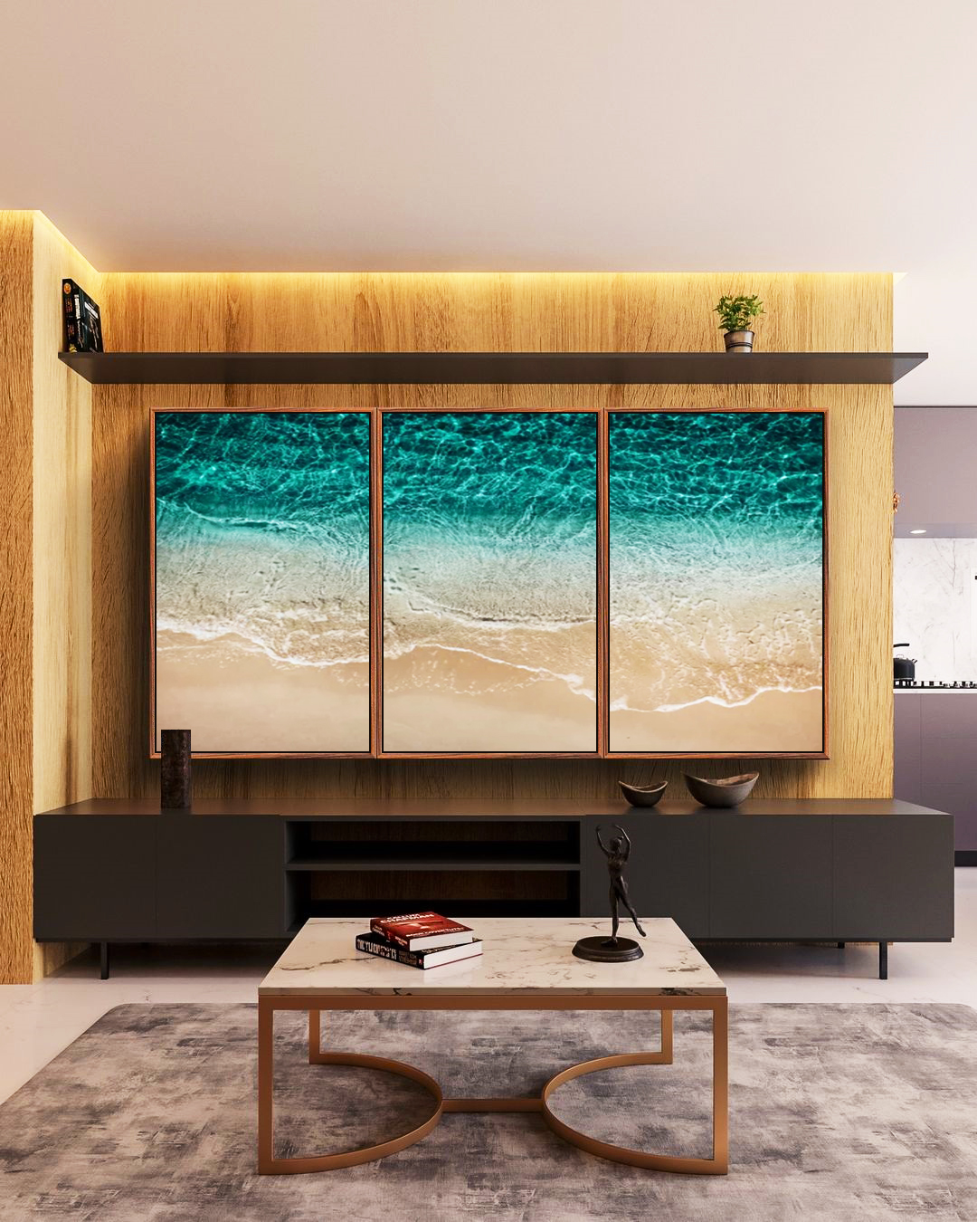 Transforme seu ambiente com este Trio de Quadros do mar em tons turquesa e areia clara. Perfeito para salas, quartos e escritórios, transmite serenidade e sofisticação. Impressão premium sobre canvas, com moldura elegante e resistente.