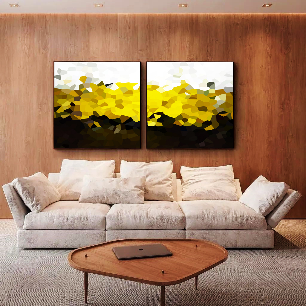 Um mosaico elegante em dourado, marrom e branco que transforma qualquer ambiente. Este Duo de Quadros Quadrados traz brilho sutil e sofisticação, sendo ideal para decorar salas, quartos ou halls de entrada com arte moderna. Perfeita harmonia visual.