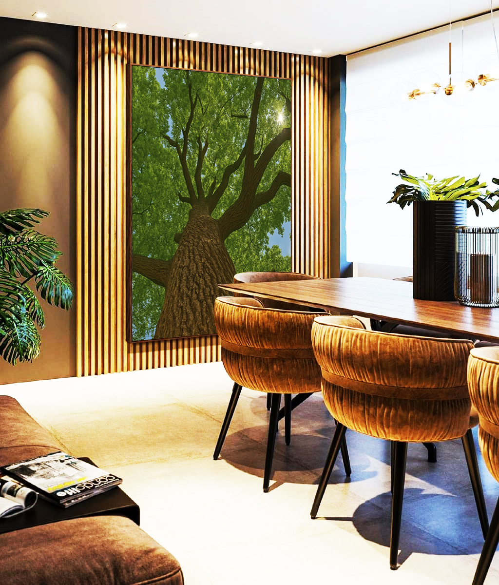 Sereno e sofisticado, este Quadro Vertical retrata a beleza da Natureza com folhas verdes e árvore em destaque, criando sensação de equilíbrio visual. Ideal para valorizar salas refinadas, quartos elegantes ou halls de entrada marcantes.