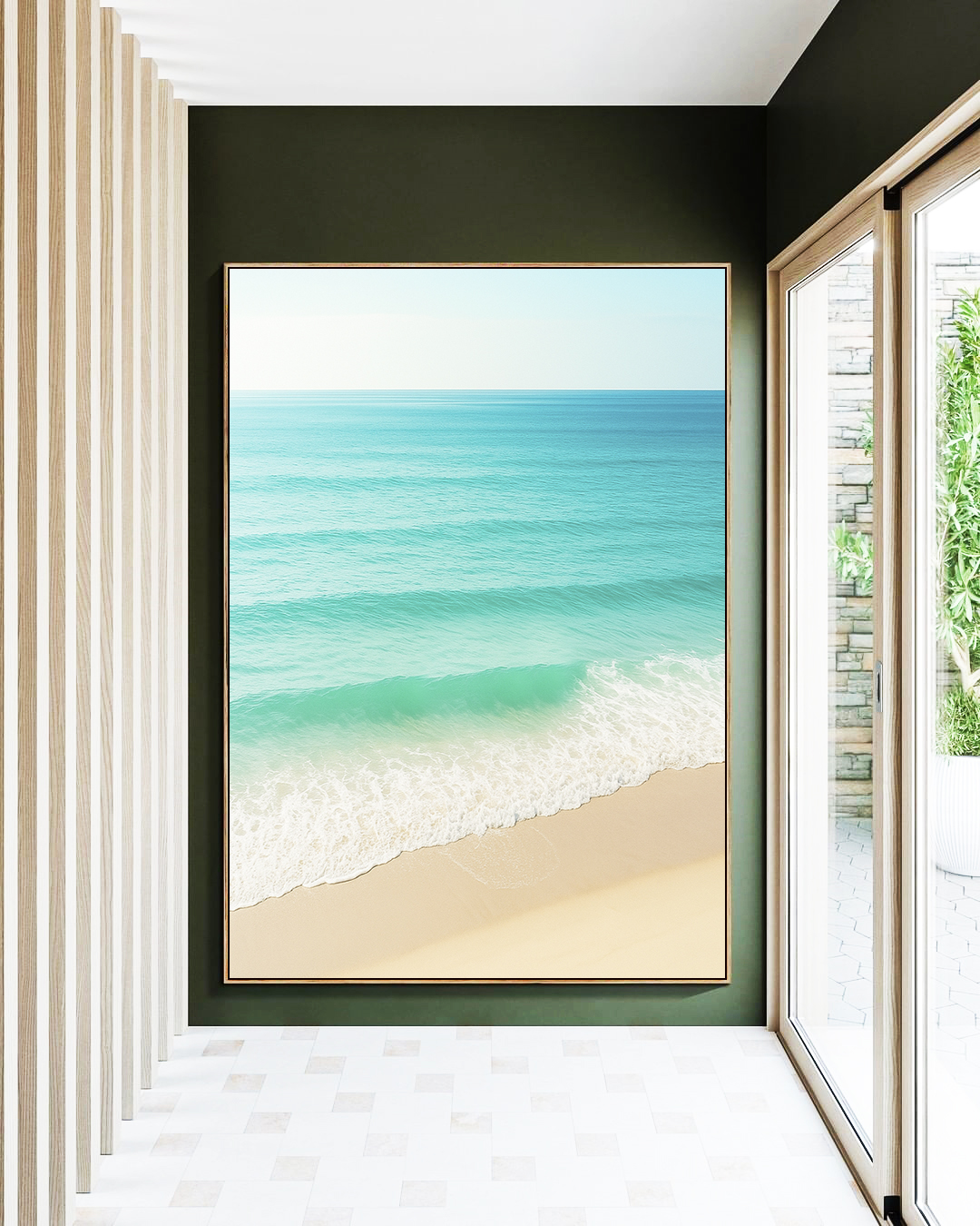 O equilíbrio entre o mar calmo e o céu azul cria uma sensação única de paz. Este Quadro Vertical é perfeito para quem busca elegância e leveza, sendo a escolha certa para realçar salas, escritórios ou quartos com um toque de natureza e sofisticação.