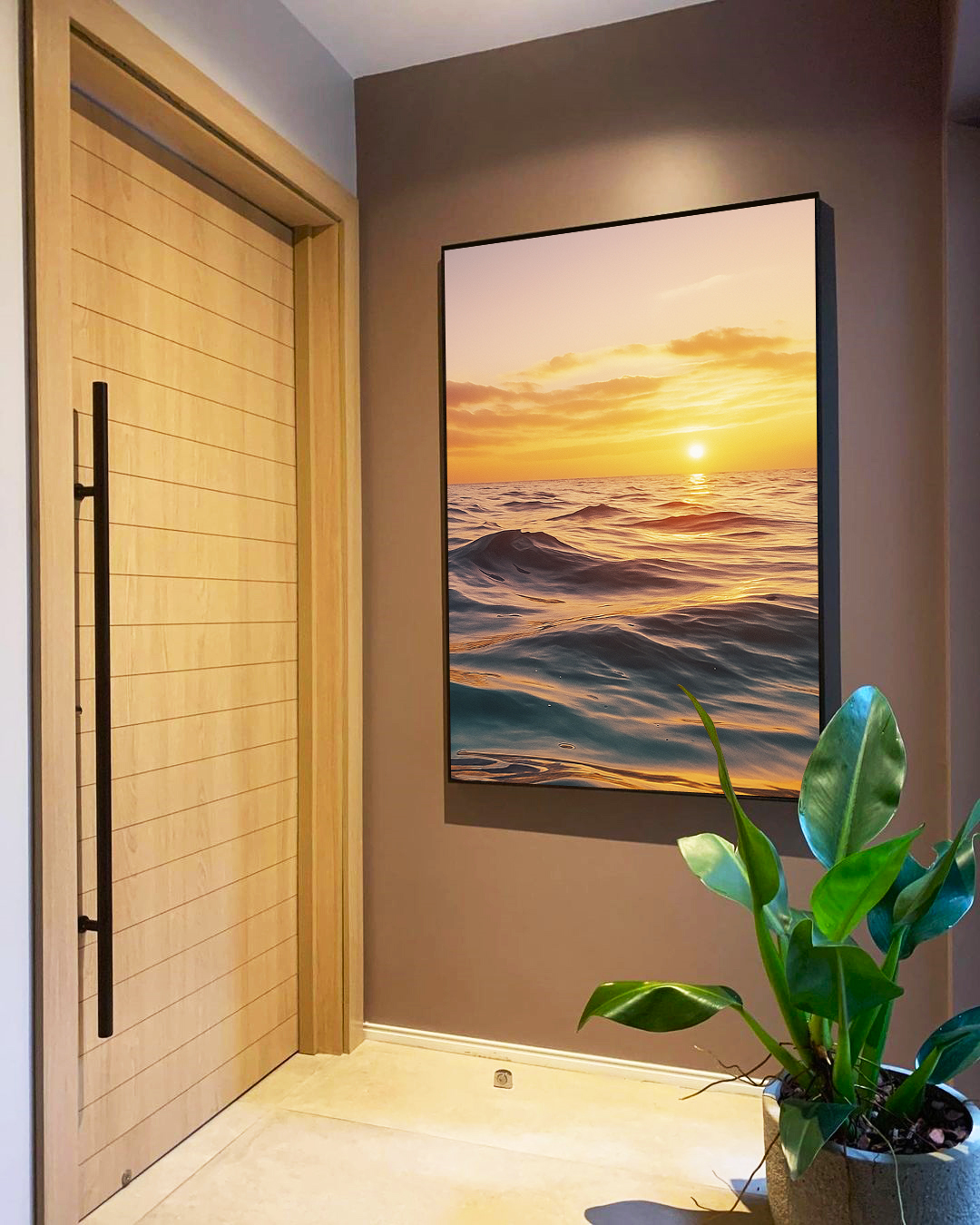 Com tons naturais e movimento suave do mar, este Quadro Verticalde pôr do sol cria um ponto focal elegante e relaxante. Ideal para compor salas contemporâneas, quartos sofisticados, escritórios profissionais ou halls de entrada marcantes.