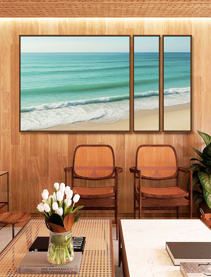 A serenidade do mar turquesa e a suavidade da areia clara se unem neste Trio de Quadros Estilizados que transmite calma e leveza. A escolha ideal para decorar salas, quartos ou halls de entrada com um toque natural e relaxante. Belíssimo!