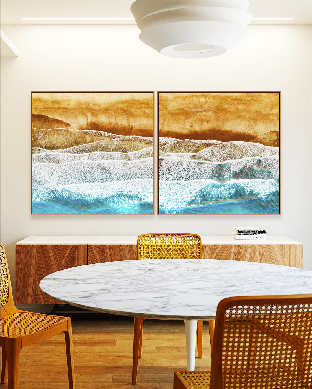 Este Duo de Quadros Quadrados captura a tranquilidade do mar azul claro e a franja de espuma sobre a areia. Ideal para decorar seu escritório, quarto ou sala de estar, trazendo harmonia, frescor e um toque natural sofisticado à sua decoração.