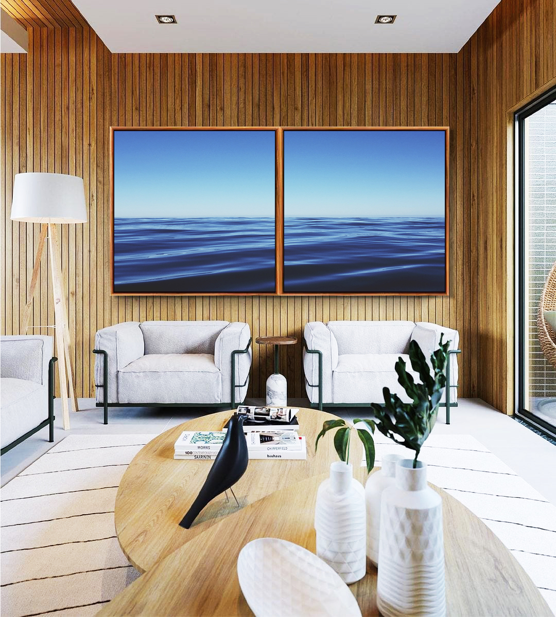 Com ondas suaves e tons de azul sereno, este Duo de Quadros Quadrados transforma o espaço com atmosfera calma e sofisticada. A escolha certa para destacar salas, quartos ou halls de entrada com arte que inspira equilíbrio, beleza natural e harmonia visual.