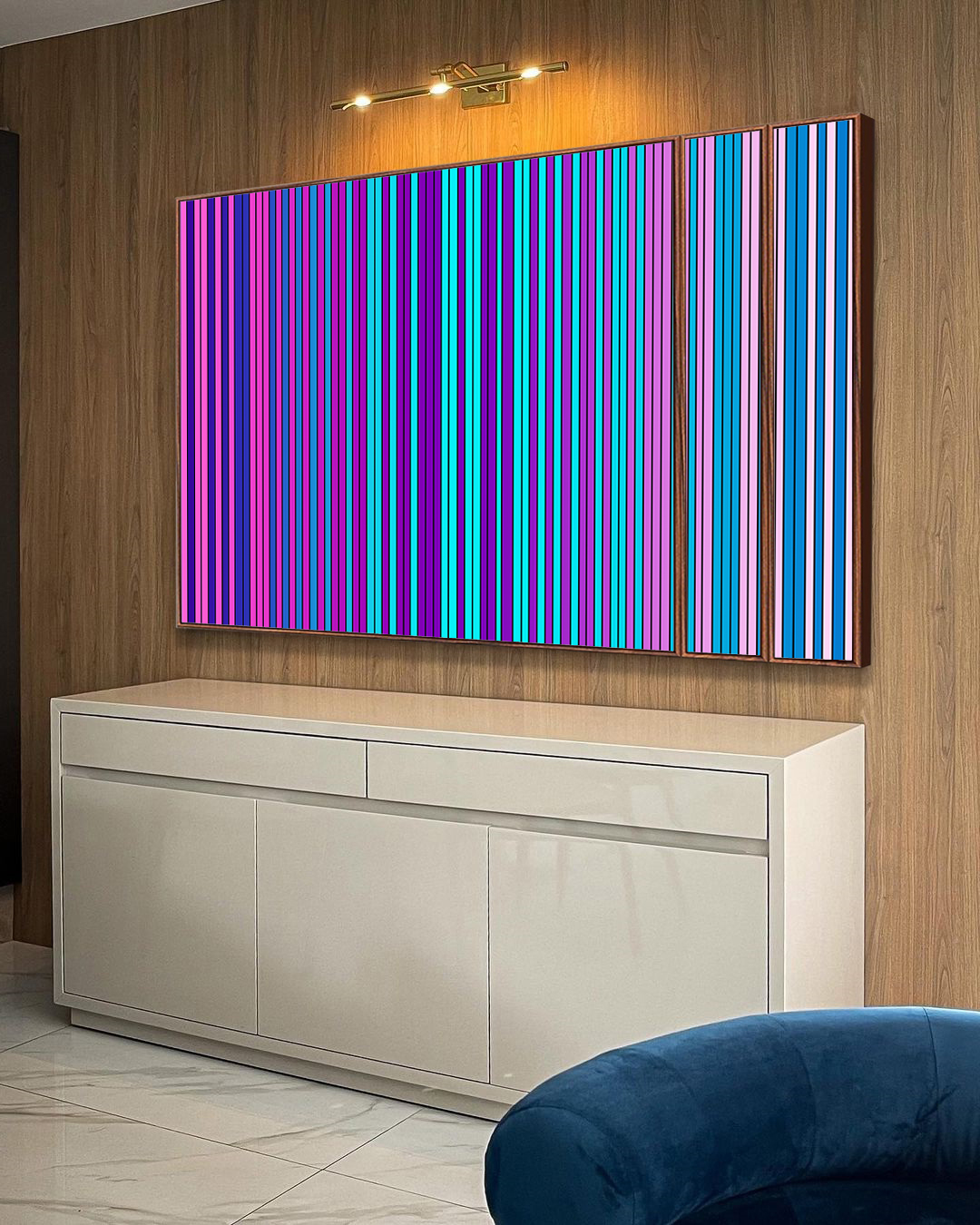 Com transições elegantes entre lilás, roxo, rosa e azul, este Trio de Quadros Estilizados entrega harmonia e sofisticação. A escolha certa para destacar salas, quartos ou halls de entrada com uma arte abstrata que transmite calma, beleza e personalidade.