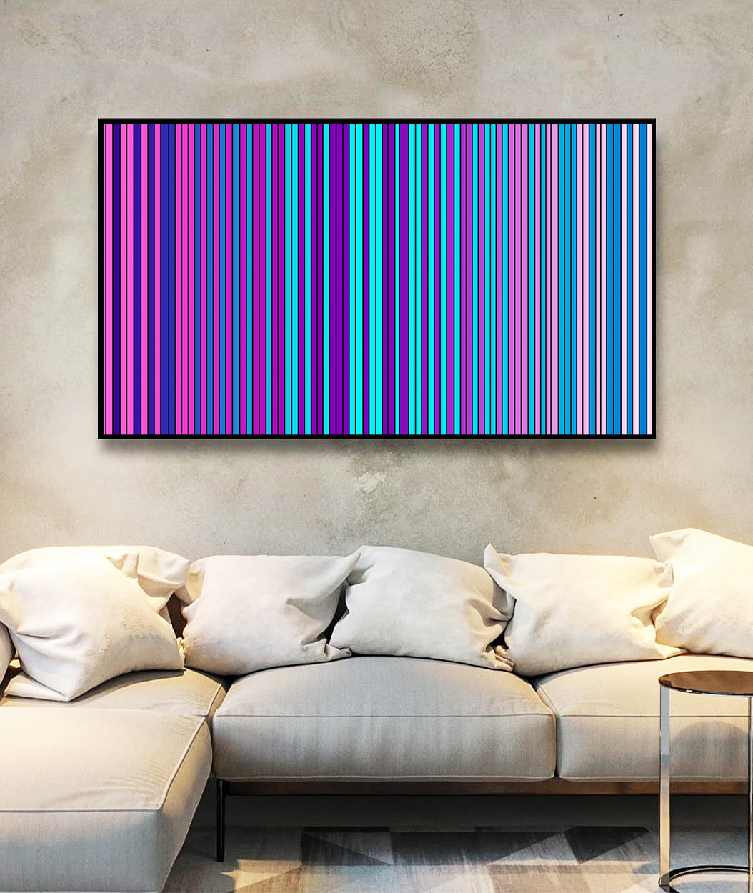 Com transições elegantes entre lilás, roxo, rosa e azul, este Quadro Horizontal entrega harmonia e sofisticação. A escolha certa para destacar salas, quartos ou halls de entrada com uma arte abstrata que transmite calma, beleza e personalidade.