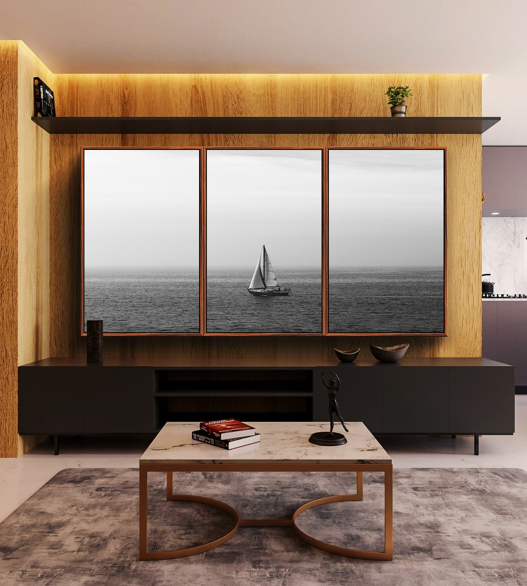 A cena de barco solitário em mar aberto, em tons de preto e branco, traduz elegância e introspecção. Este Trio de Quadros é a escolha certa para salas de estar, quartos ou escritórios, valorizando o ambiente com arte atemporal.