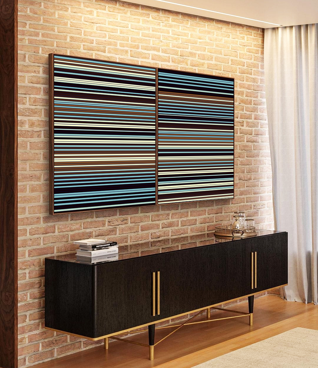 Com listras em degradê e contraste suave entre azul e marrom, este Duo de Quadros abstrato transmite equilíbrio e personalidade. Ideal para salas amplas, escritórios ou halls de entrada, ele transforma o ambiente com sofisticação e modernidade.