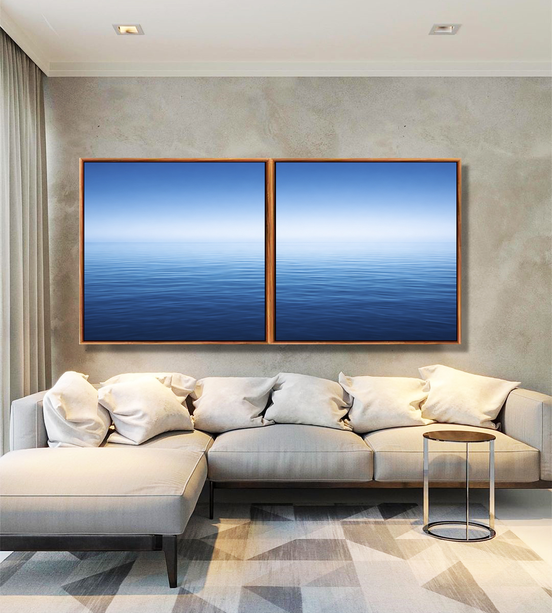 Duo de Quadros Quadrados Mar Azul Profundo Céu Azul Relaxante Canvas Moldura
