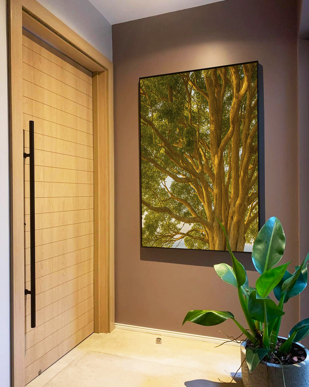A combinação do verde luminoso das folhas com o brilho do sol torna este Quadro Vertical uma peça acolhedora e inspiradora. Ideal para salas, quartos ou escritórios que buscam beleza natural, profundidade e um toque refinado de paisagem.