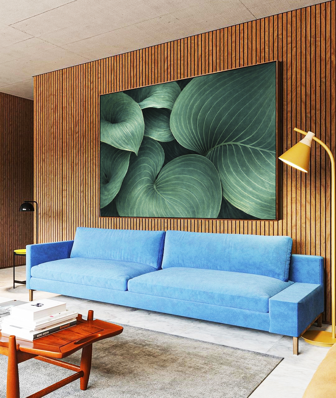 Este Quadro Horizontal destaca folhas de Hosta em tons verdes intensos, criando um visual sofisticado e atemporal. Ideal para decorar salas de estar, quartos sofisticados, escritórios elegantes ou halls de entrada com identidade natural.