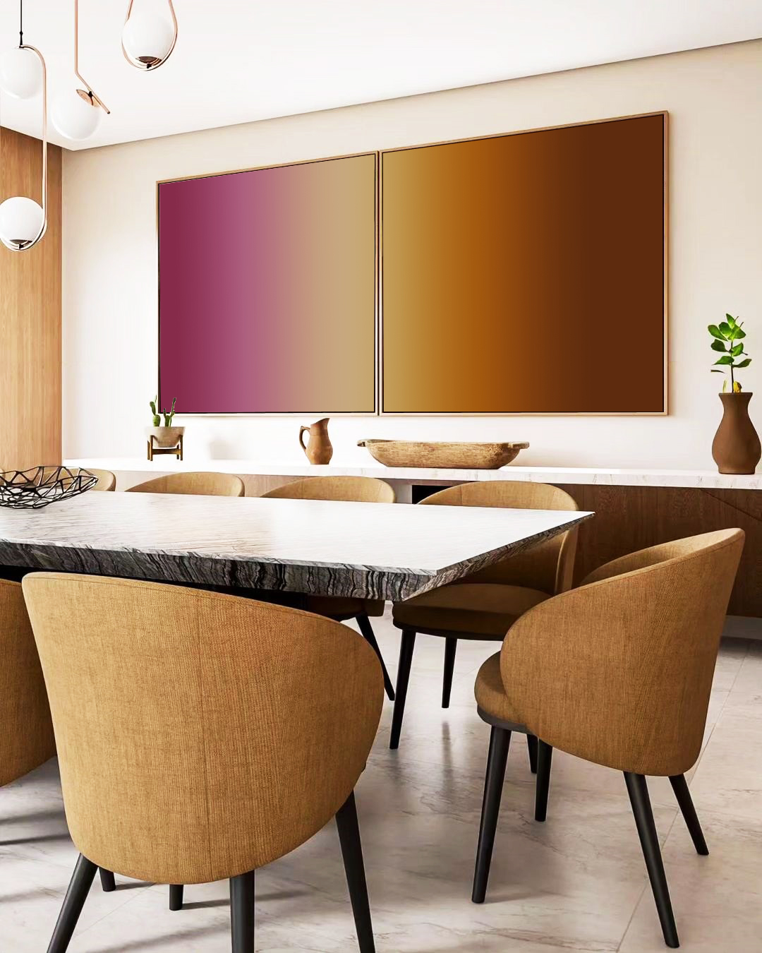 Duo de Quadros Quadrados Abstrato Degradê Vinho Marsala Marfim Marrom Cobre Canvas Moldura