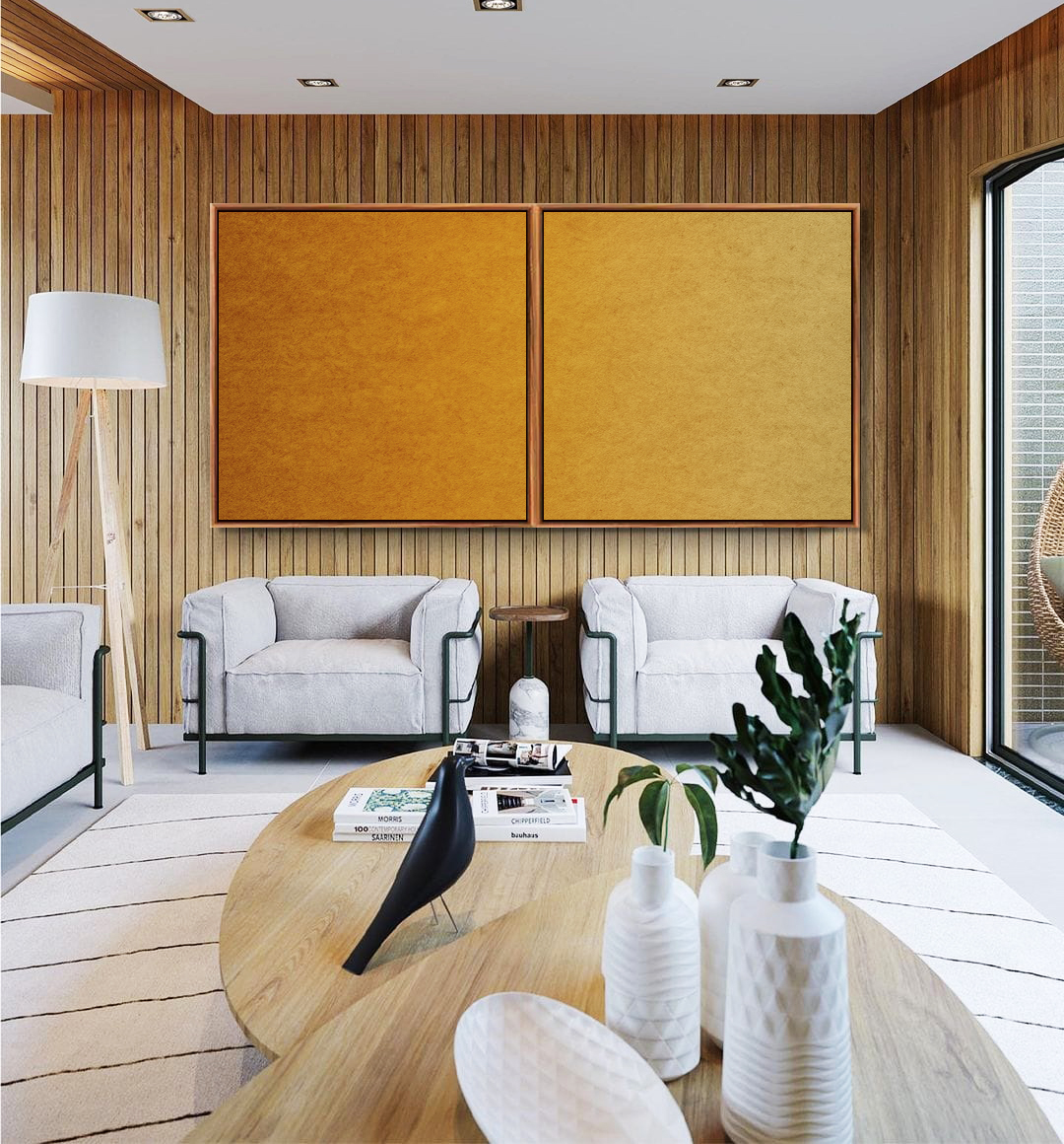 Vibrante e sofisticado, este Duo de Quadros Quadrados em degradê mostarda e amarelo ouro cria luminosidade elegante e presença marcante. A escolha ideal para salas refinadas, quartos estilosos ou escritórios contemporâneos.
