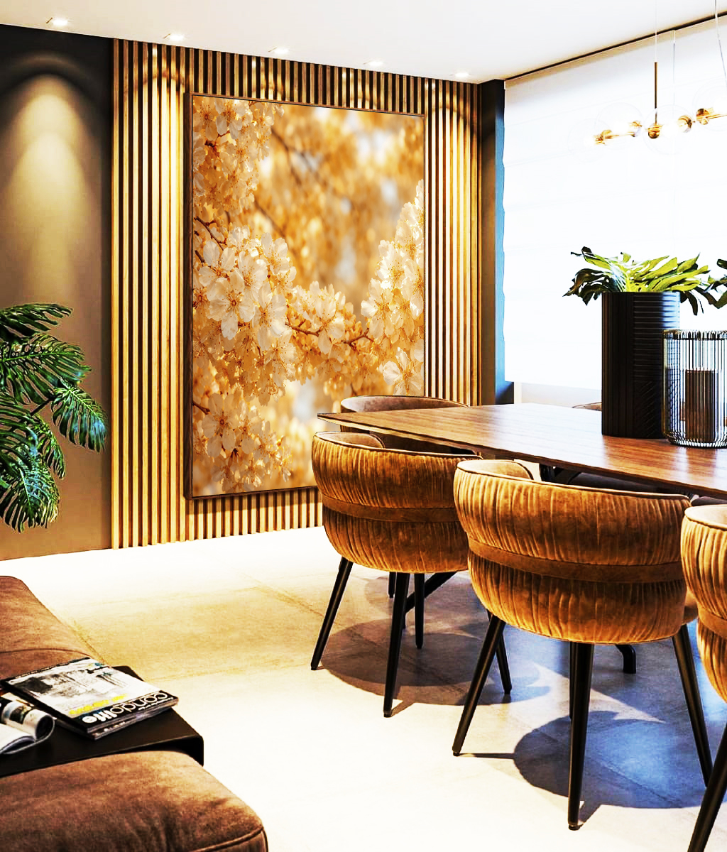 A delicadeza das cerejeiras em flor cria uma atmosfera luminosa e envolvente, perfeita para quem busca harmonia na decoração. Ideal para decorar salas amplas, quartos sofisticados, escritórios contemporâneos ou halls de entrada marcantes.