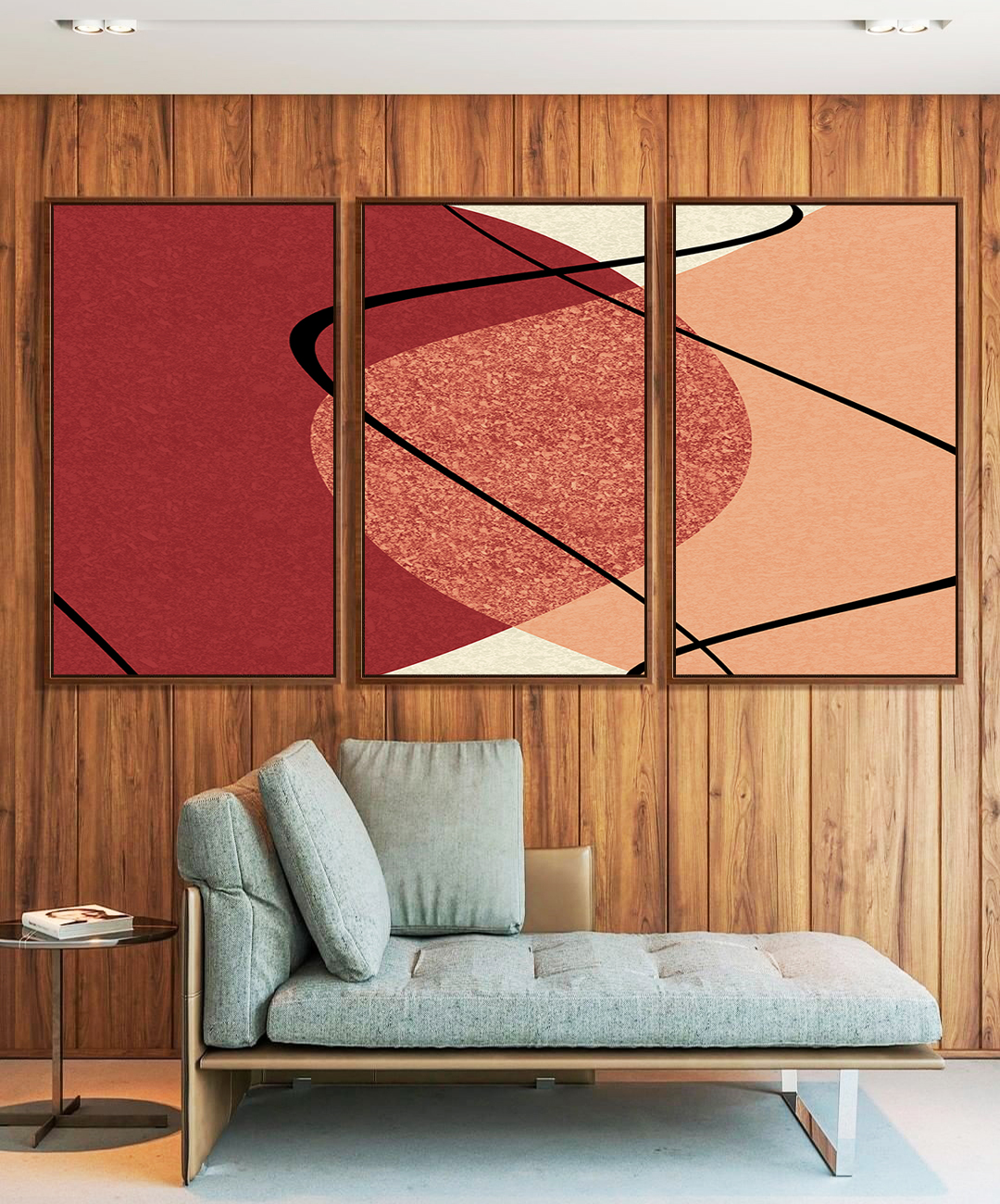 As linhas suaves e cores marcantes de rosa e vermelho telha tornam este Trio de Quadros a escolha certa para quem busca elegância e decoração estivo Escandinava. Perfeito para salas, quartos ou escritórios, acrescentando estilo e arte.