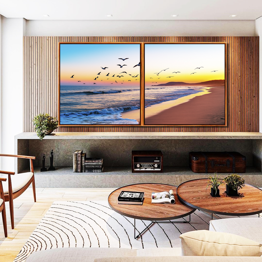 Neste Duo de Quadros Quadrados a luz dourada da manhã encontra o azul calmo do mar nesta obra que desperta paz e renovação. Perfeito para decorar sua sala, quarto ou hall de entrada, adicionando sofisticação e um toque natural à sua decoração.