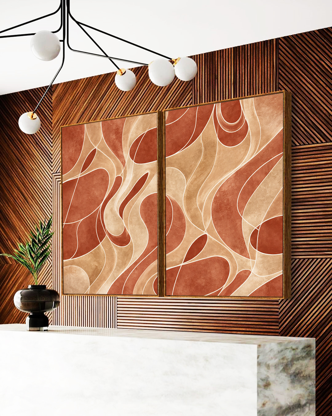 Sofisticado e elegante, este Duo de Quadros em contornos coral e marfim cria atmosfera contemporânea e equilibrada, tendência artística. Ideal para compor salas modernas, quartos elegantes ou halls de entrada marcantes com presença visual.