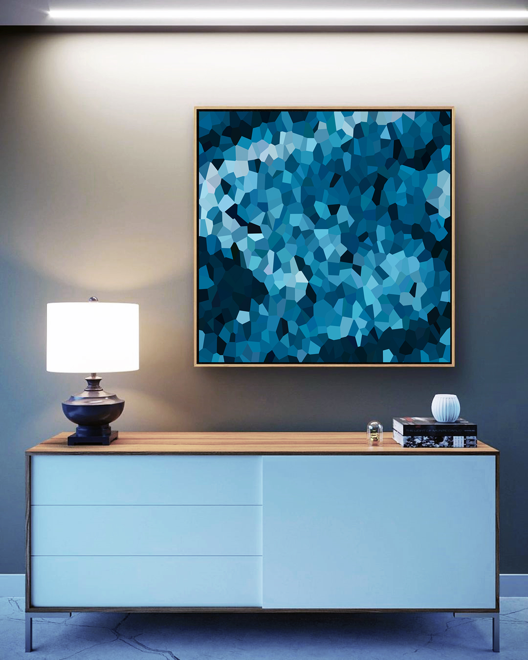 Quadro Quadrado Abstrato Mosaico Azul Marinho Claro Canvas Moldura