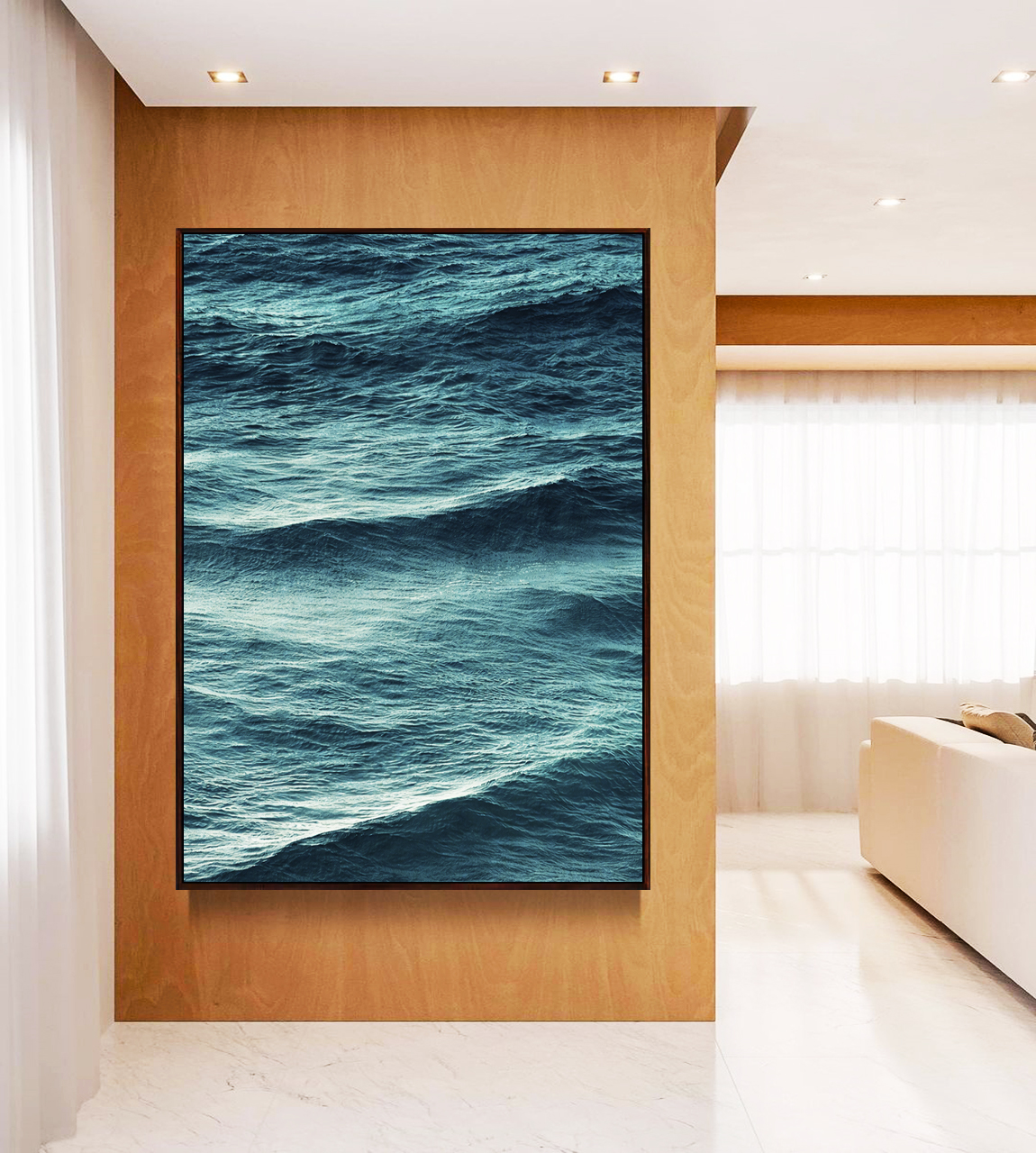 Imponente e sofisticado, este Quadro Vertical com alto mar azul turquesa ondulado transmite força, movimento e frescor natural ao ambiente. A escolha ideal para salas elegantes, quartos modernos ou halls de entrada imponentes.