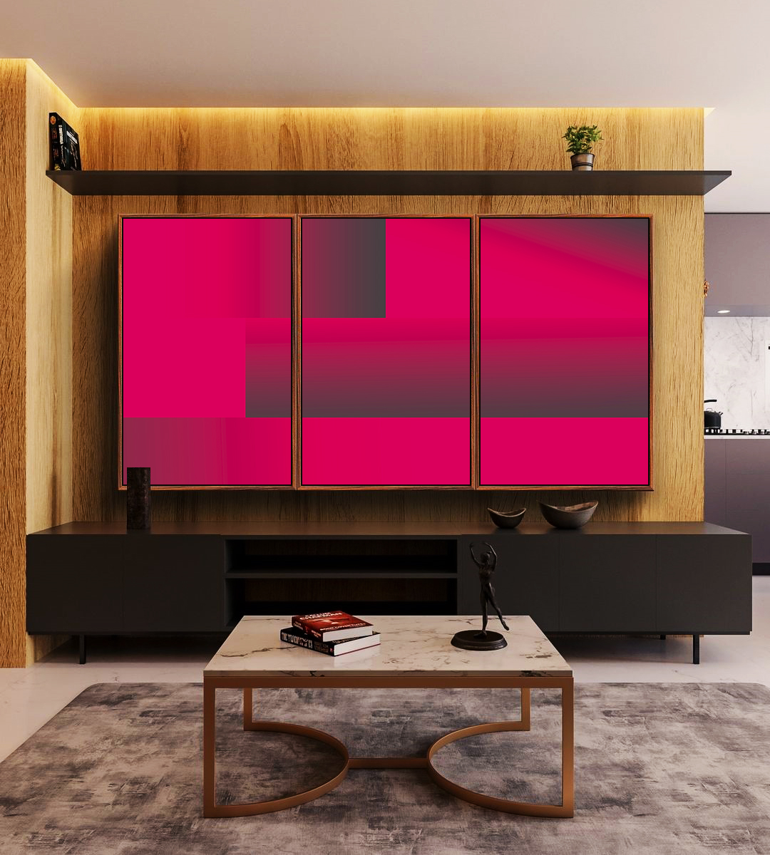 O equilíbrio entre arte e elegância define este Trio de Quadros de estilo mosaico. Seu tom de Rosa em degradê e design geométrico são a escolha certa para compor salas, quartos ou halls de entrada com um toque moderno, delicado e inspirador.
