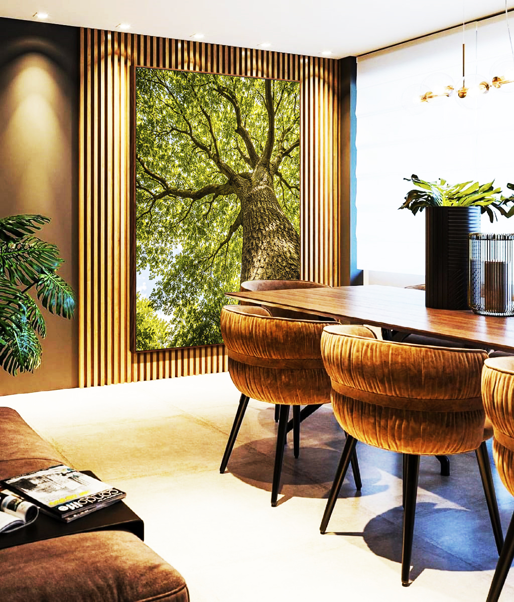 Folhas exuberantes e galhos delicados em uma paisagem cheia de vida e tranquilidade. Ideal para decorações modernas, naturais ou rústicas, com toque de bem-estar. Ideal Para seu Quarto, Sala, Hall ou Escritório.