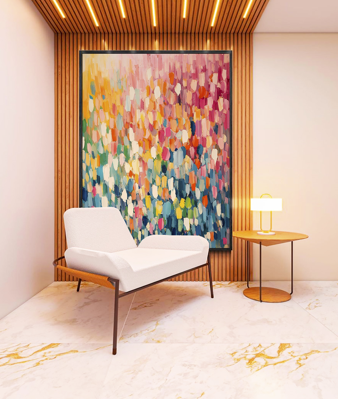 Abstrato colorido com efeito espatulado que traz movimento, textura e energia ao ambiente. Ideal para salas modernas, hall de entrada, escritório, quartos ou living. Perfeito para decoração contemporânea, ambientes criativos, design modernos.