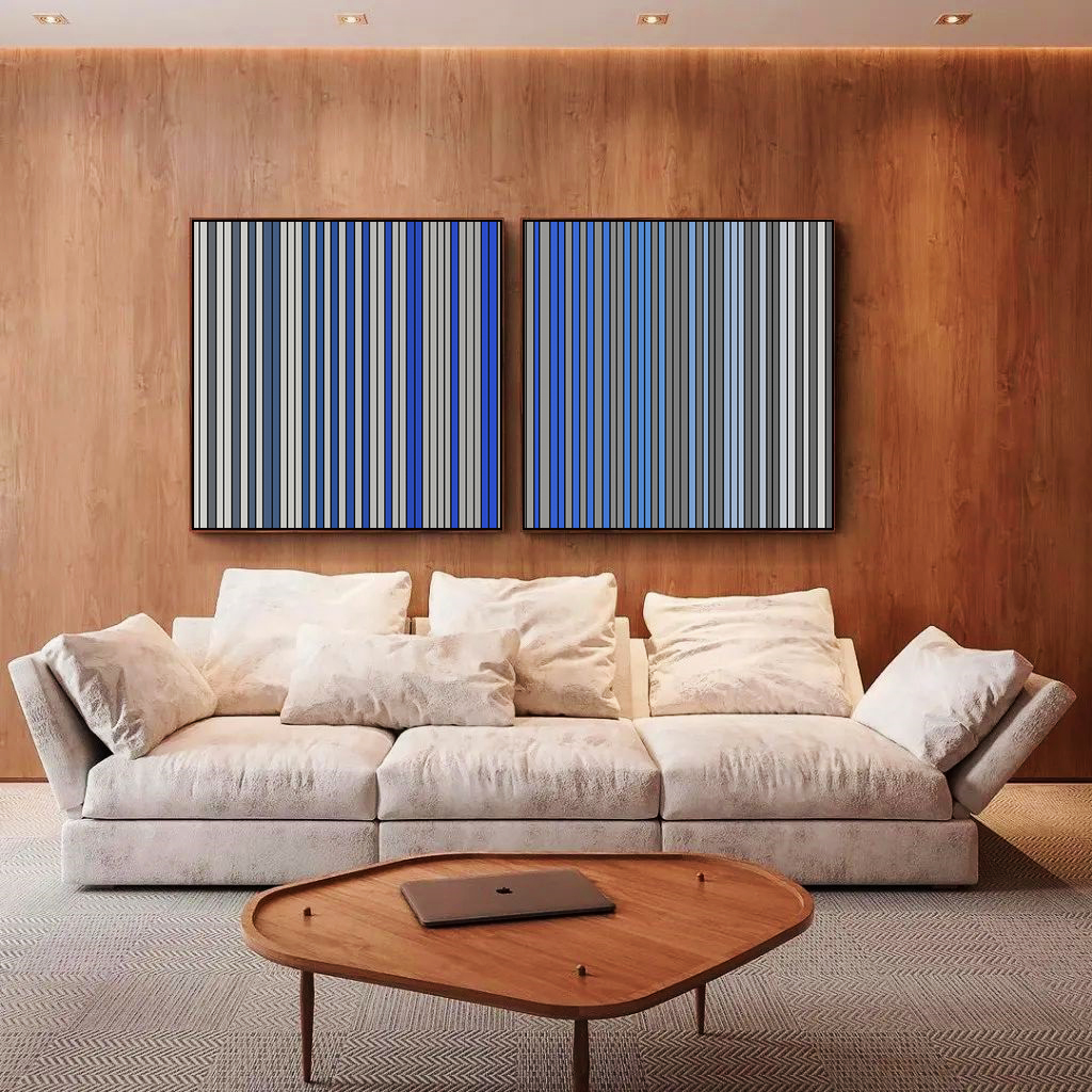 Com nuances em degradê que vão do cinza ao azul profundo, este Duo de Quadros Quadrados abstrato é perfeito para quem busca modernidade e equilíbrio. A escolha certa para compor salas amplas, quartos sofisticados ou escritórios com design minimalista.