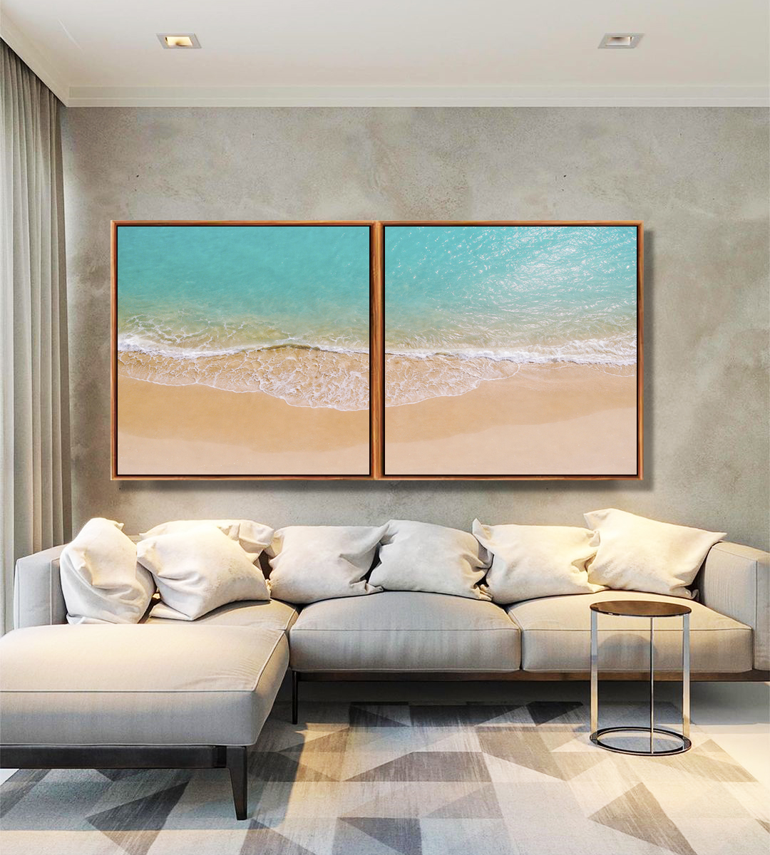 Duo de Quadros Quadrados Praia Mar Azul Turquesa Iluminado Sol Canvas Moldura