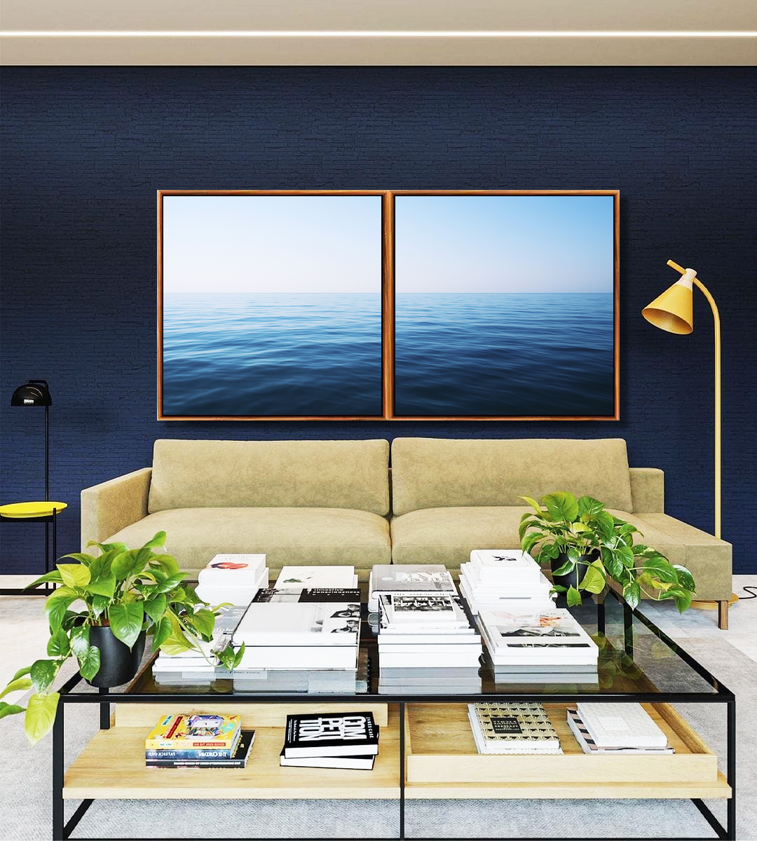 Este Duo de Quadros Quadrados captura a tranquilidade do mar calmo e do céu claro, trazendo sensação de frescor e bem-estar. Perfeito para compor salas, halls ou escritórios que valorizam serenidade e elegância.