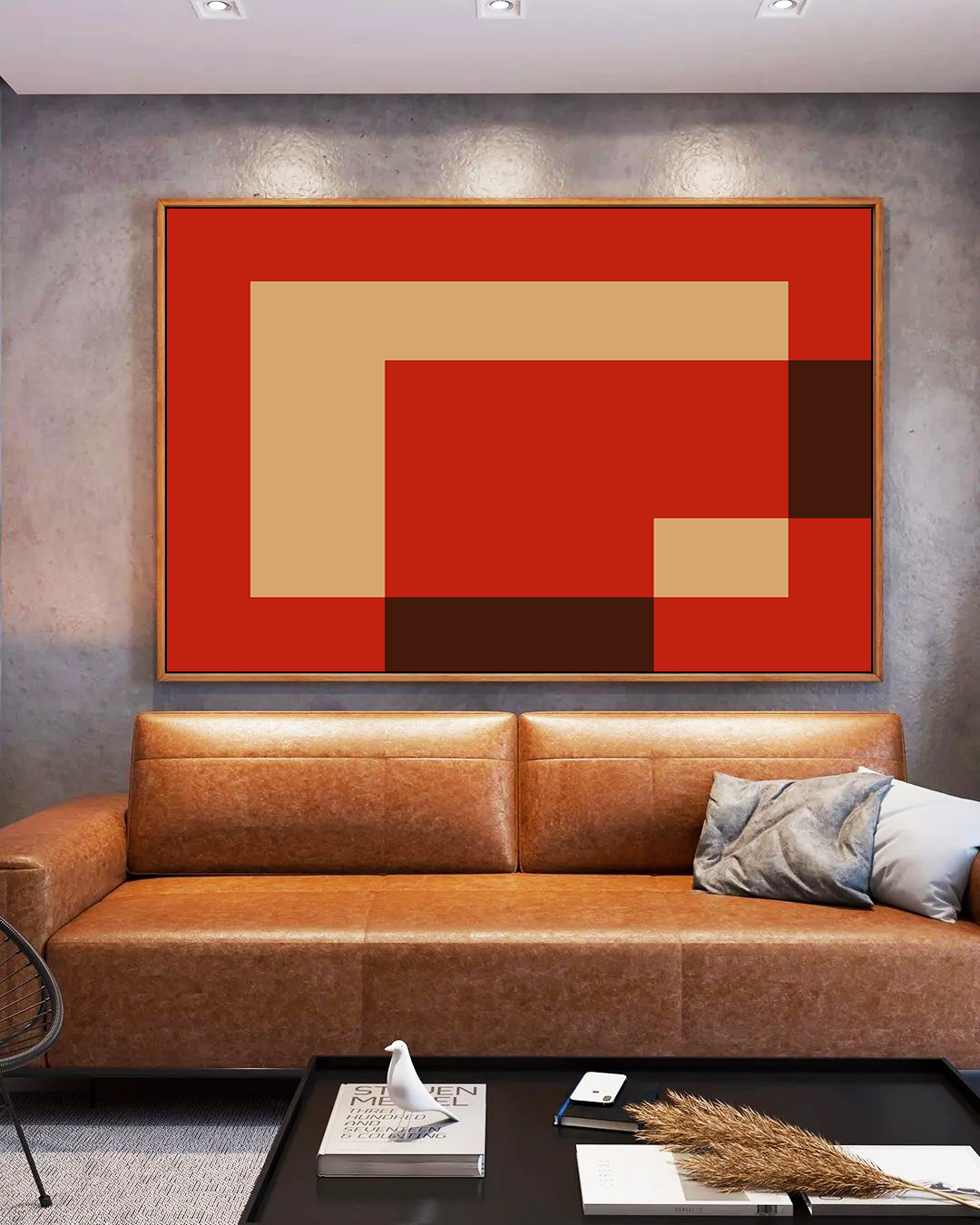 O contraste entre o vermelho e o marfim cria uma atmosfera moderna e acolhedora. Um Quadro Horizontal de linhas geométricas que é a escolha certa para transformar sua sala, quarto ou hall em um ambiente cheio de estilo.