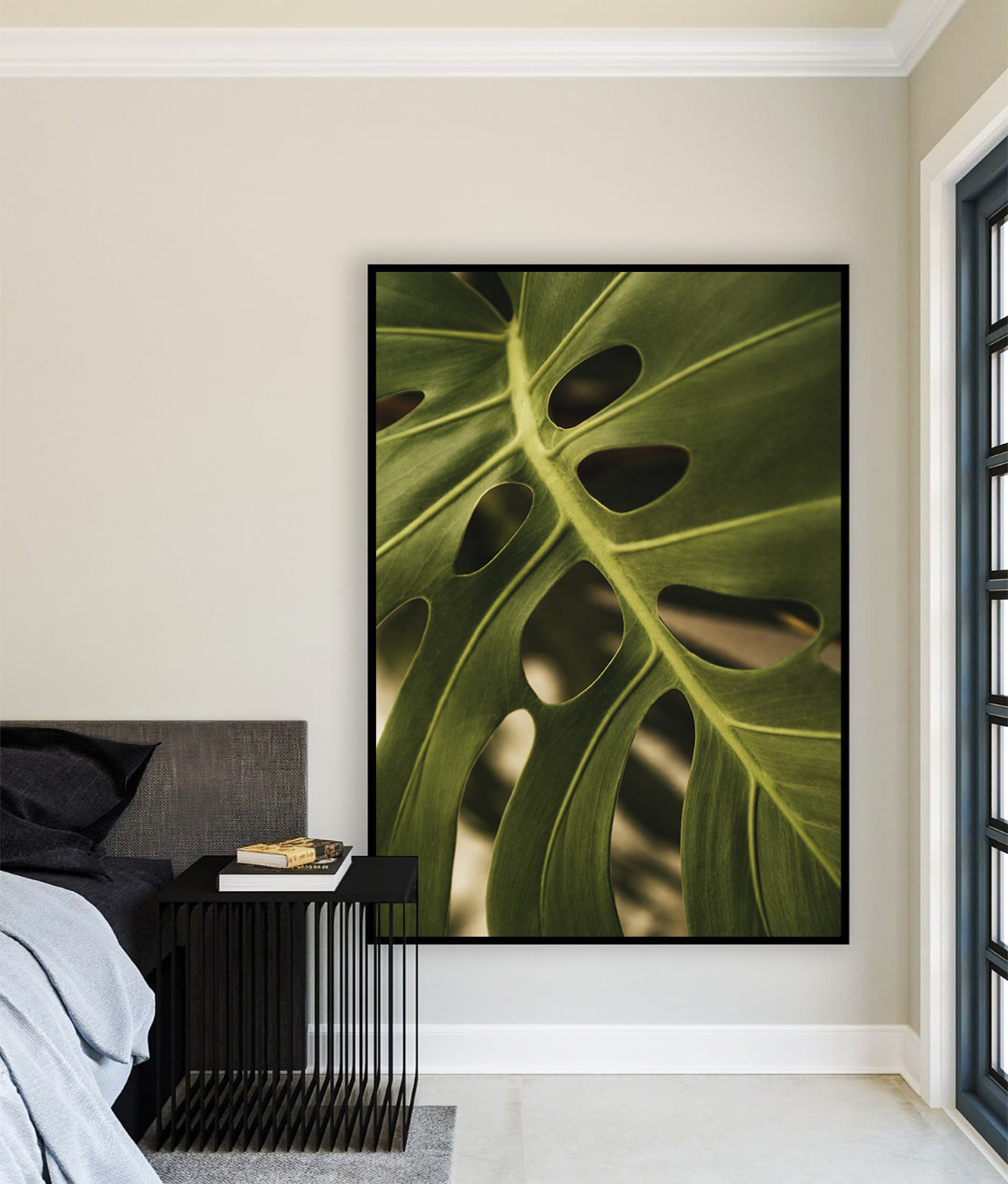 Folha de Costela-de-Adão em verde intenso, trazendo frescor e sofisticação tropical ao ambiente. Ideal para sala, quarto, escritório ou espaços que pedem um toque natural moderno.