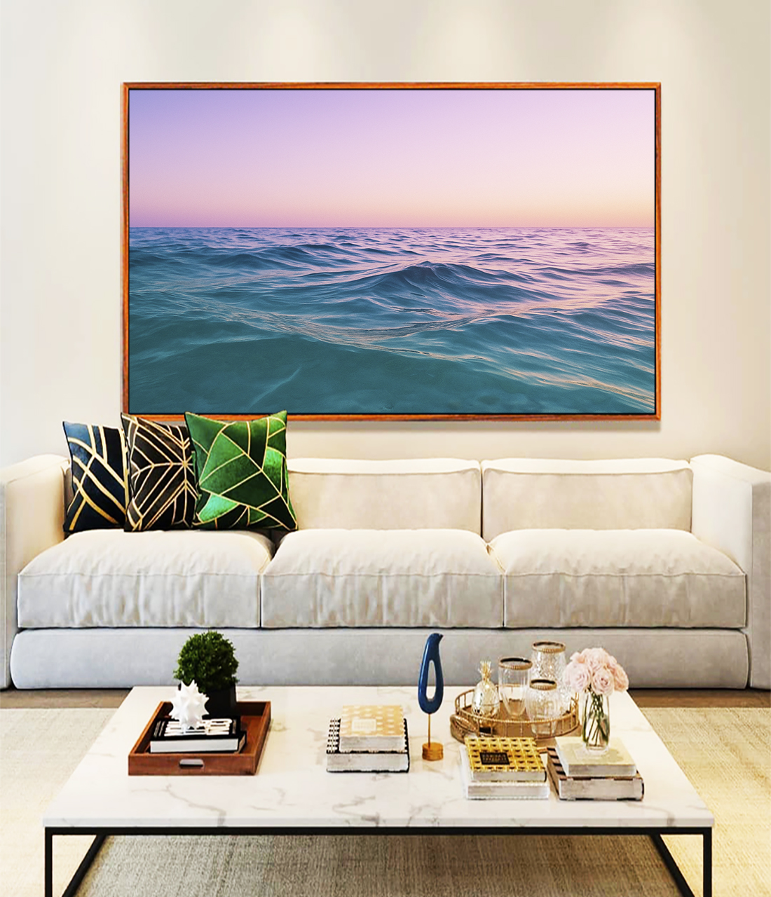 Com tons rosa, lilás e mar azul, este Quadro Horizontal captura a beleza do amanhecer e traz harmonia à decoração. Ideal para salas amplas, quartos modernos ou halls de entrada que buscam um toque elegante, suave e visualmente marcante.