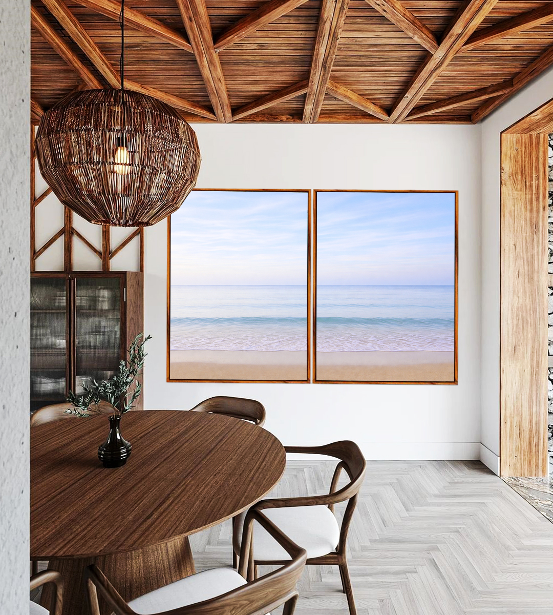 Sereno e luminoso, este Duo de Quadros com nascer do sol sobre a praia em tons lilás traz sensação de paz e equilíbrio. Ideal para compor salas elegantes, quartos tranquilos, escritórios sofisticados ou halls de entrada acolhedores.