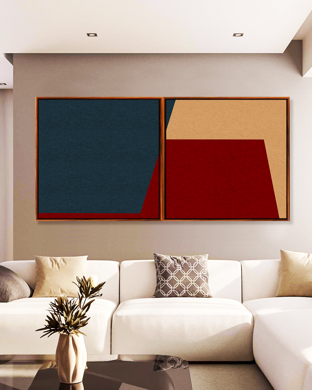 Este Duo de Quadros Quadrados abstrato minimalista combina tons de azul e vermelho em linhas geométricas modernas, despertando sofisticação e estilo. A escolha ideal para decorar sua sala, quarto ou escritório, trazendo charme e personalidade.