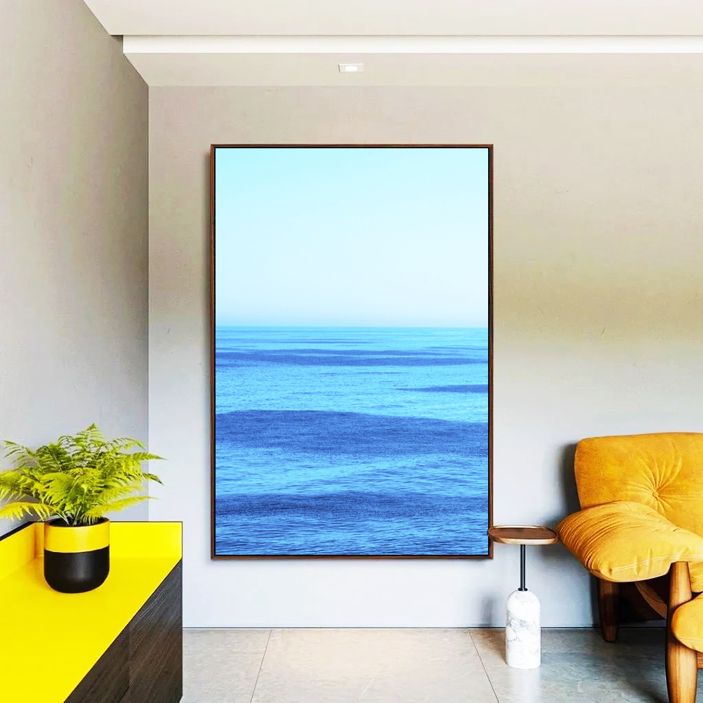 O Quadro Vertical destaca o mar azul com ondulações suaves sob um céu claro, trazendo movimento e tranquilidade ao ambiente. A escolha ideal para decorar sua sala, quarto ou hall de entrada com a força serena e encantadora da natureza.