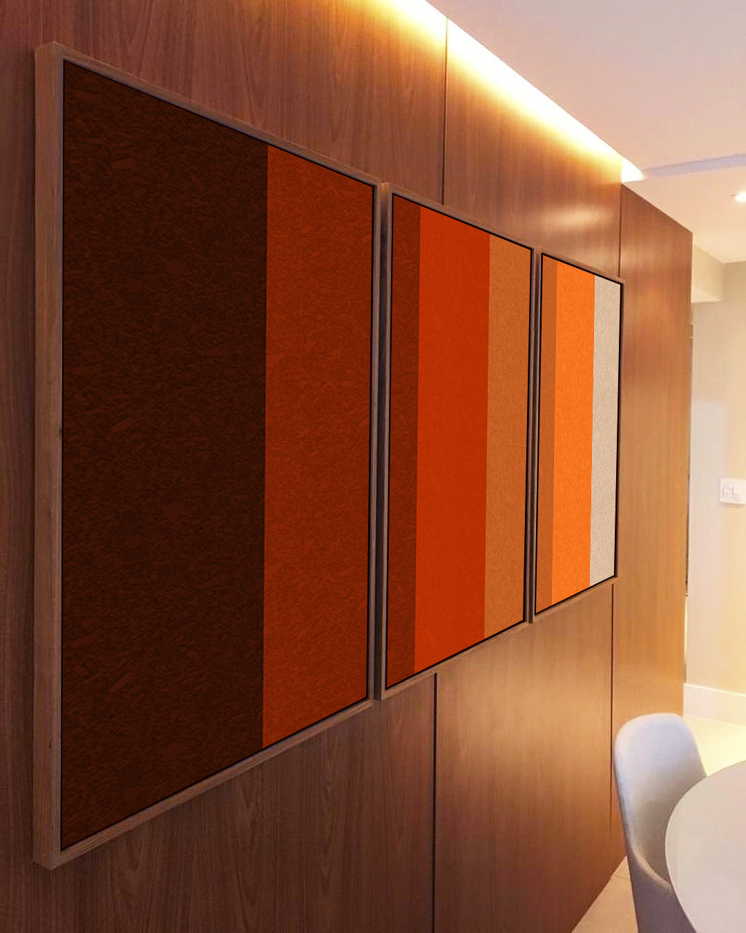 Este Trio de Quadros traz um belo degradê em tons de marrom e laranja, com formas geométricas que irradiam calor e sofisticação. A escolha ideal para transformar sua sala, quarto ou escritório com arte moderna e atmosfera acolhedora.